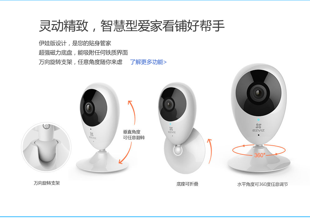 ???螢石高清家用網(wǎng)絡(luò)攝像機(jī),200萬像素,1080P高清分辨率,畫質(zhì)清晰,成像效果一流;高清廣角視角,輕松覆蓋每個(gè)角落,;紅外高清夜視效果翻蓋范圍達(dá)10米,再也不用擔(dān)心夜晚看不清的尷尬。